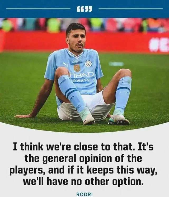 事实上,罗德里在本赛季欧冠小组赛开始后的采访中就曾警告,球员们若继续承受过重的比赛压力,或许会选择罢工。此言也得到了B席、德布劳内、孔德和库尔图瓦等知名球员的支持,而曼城主帅瓜迪奥拉亦表示认可。显然,罗德里所言并非一时冲动,他确实感到身心俱疲。