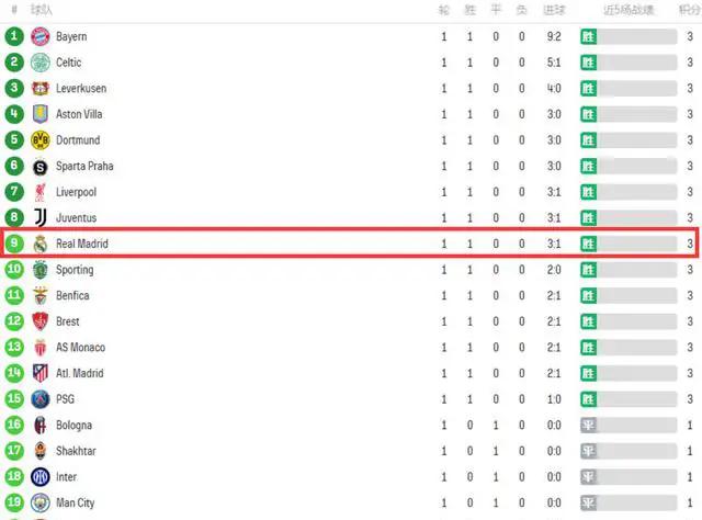 截至目前,欧冠首轮的比赛已经全部结束。凭借净胜球的关系,拜仁目前高居第一,紧随其后的是凯尔特人和勒沃库森,多特蒙德、利物浦和尤文等豪门同样位列前八。而卫冕冠军皇马则被挤到第9位,这支西甲豪门在首轮便掉出了前八,实在令人意外。而让人更加惊讶的是,包括大巴黎和曼城在内的其他强队同样未能进入前八。至于巴萨和阿森纳,他们在首轮后更是失去了进入前八的机会。